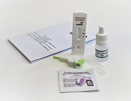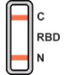 Набор реагентов для иммунохроматографичесого выявления антител IgG раздельно к RBD-антигену и нуклеокапсидному N-антигену COVID-19 (SARS-CoV-2) в образцах сыворотки, плазмы или цельной крови человека.